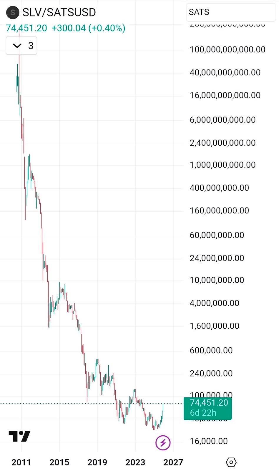 [첨부 이미지 3: 비트코인 대비 은 가격 비율 차트]