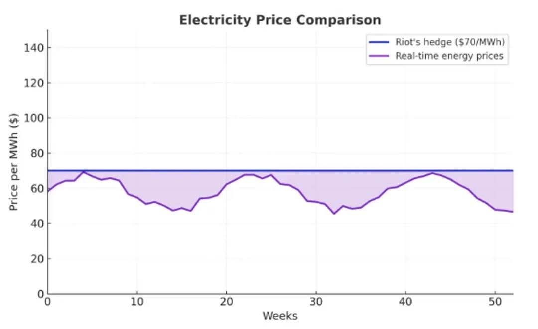 일부 주에서는 채굴자들이 전력 공급업체와 장기 계약을 맺고 특정 기간 동안 전기를 '고정 요금(Flat rate)'으로 구매하는 헷징(Hedge) 계약이 허용됩니다. 평상시(약 85%의 시간)에 채굴자들은 실제 시장 가격보다 전깃값을 조금 더 비싸게 지불(Overpaying)하는 손해를 감수하면서 운영 비용의 불확실성을 없앱니다.