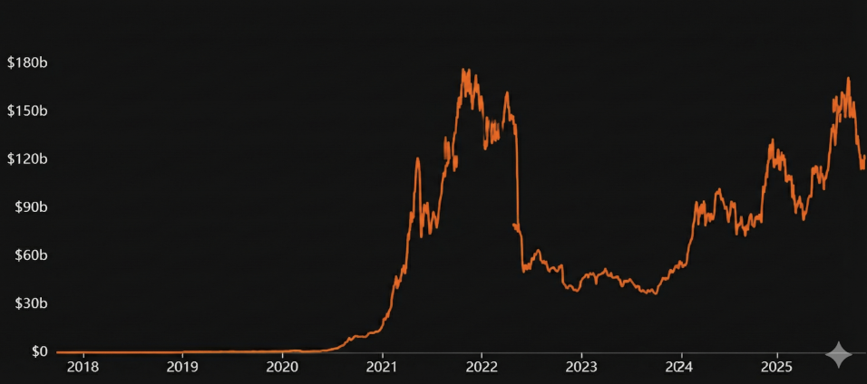 연도별 전체 디파이 TVL. (본 이미지는 생성형 AI를 이용하여 제작되었습니다)